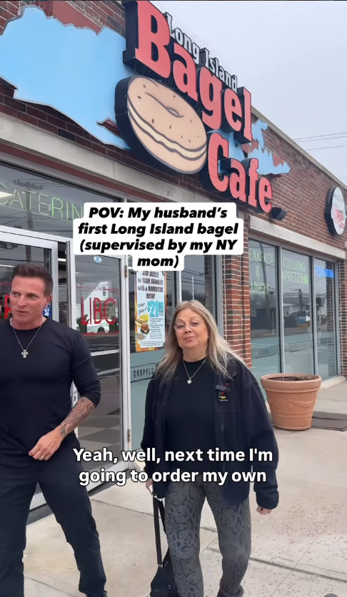 “She’s 80 years young, set in her ways and very serious when it comes to her Long Island bagels!” Burton’s wife Michelle stated while posting a video then went on to express how her hubby “was in his glory” as they shared a meal at the Long Island Bagel Café.