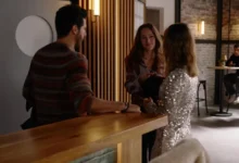 Doch Melina lässt auf sich warten. Genau in diesem Moment taucht Nathalie in einem glitzernden, figurbetonten Kleid auf und springt ein: Sie bietet Emma an, ihre Schicht zu übernehmen und rettet so die Situation.