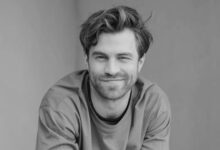 GZSZ-Star Timur Ülker posiert ganz in Weißgekleidet vor einer Fotowand