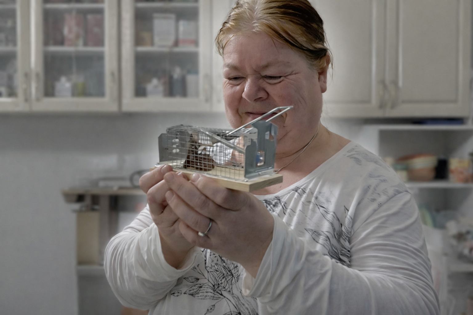 Um das Problem in den Griff zu bekommen, greift Pamela schließlich selbst zur Mausefalle.