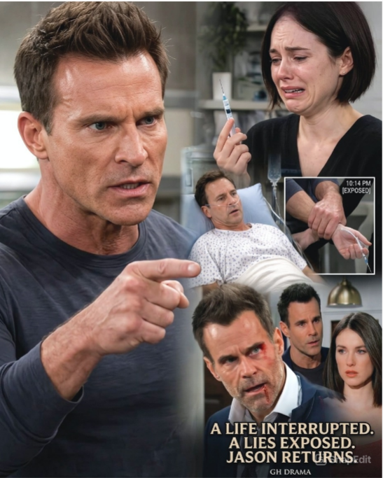 The air in Port Charles turned electric tonight as a stunning sequence of events unfolded at General Hospital, culminating in the dramatic return of Jason Morgan and the explosive confession of Willow Corinthos, a moment that has shattered the foundation of the town’s most prominent families. In a scene that will undoubtedly go down in daytime television history, Jason emerged from the shadows of Drew Cain’s hospital room, his hand snapping around Willow’s wrist just as she prepared to inject a lethal dose of paralytic into her paralyzed victim, stopping the needle mere inches from Drew’s IV line. The confrontation, captured in real time, revealed the depth of Willow’s descent into villainy, a fall from grace that has been building for months as she manipulated, blackmailed, and lied to protect her secret. Tonight, that carefully constructed house of cards came crashing down.— (Full Details Below👇)